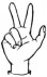 На ћирилици написано ЛАРА ГОЛУБ састоји се из 9 слова [?]. Исписано ћириличном једноручном азбуком за глувонеме: